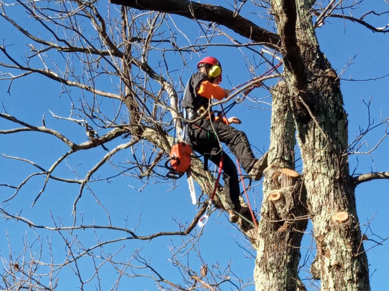 Maxime a suivi une formation pour grimper en sécurité, ce qui lui permet d'elaguer lui-même les arbres en fonction de leur état et de leur passif, et ainsi adapter la taille.